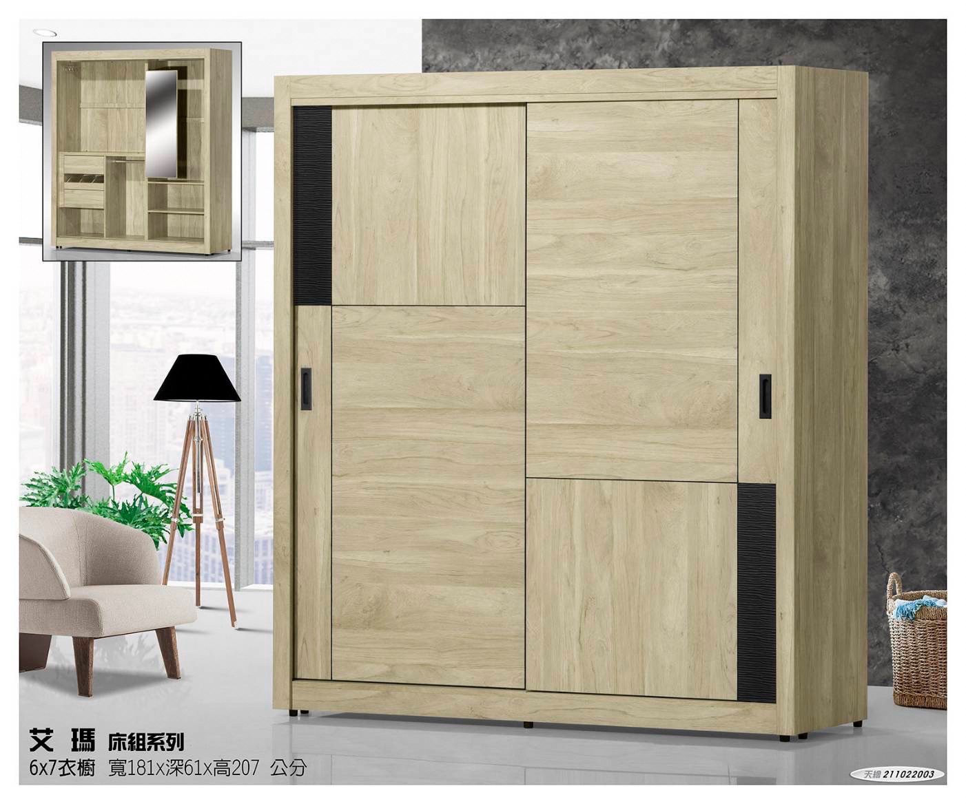 6X7衣櫥:寬181 X 深61 X 高207 公分
