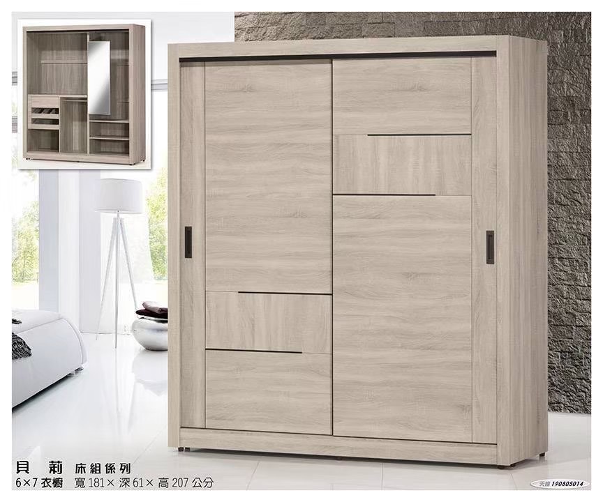 6X7衣櫥:寬181 X 深61 X 高207 公分