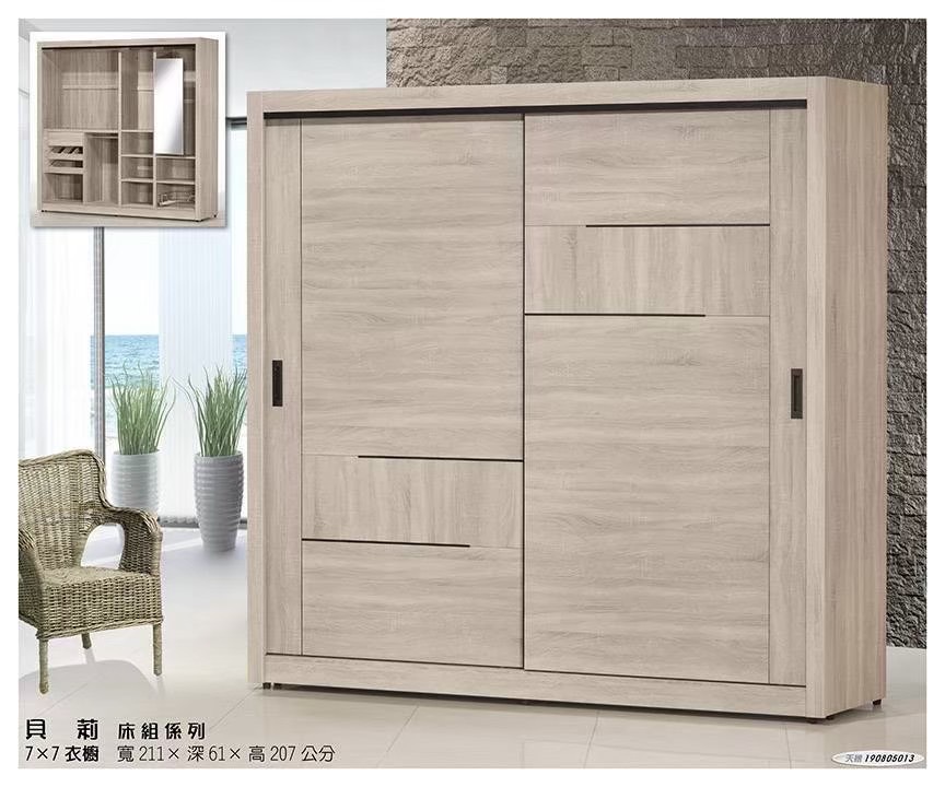 7X7衣櫥:寬211 X 深61 X 高207 公分